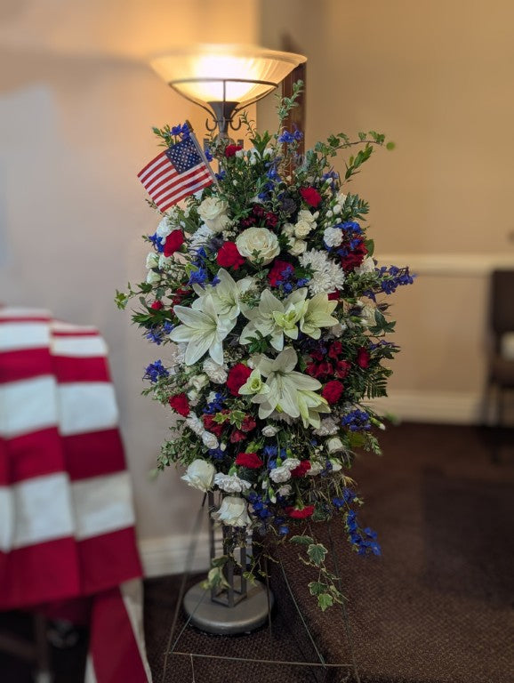 Standing easel sprays are graceful floral arrangements displayed on an easel, making them a striking tribute at funerals or memorial services. Designed in a variety of styles and colors, they offer a beautiful way to express love, sympathy, and remembrance while bringing comfort to family and friends during a difficult time. If you don't see what you are looking for, call for additional sizes, colors, or customization; we're always happy to help: 661-557-5083